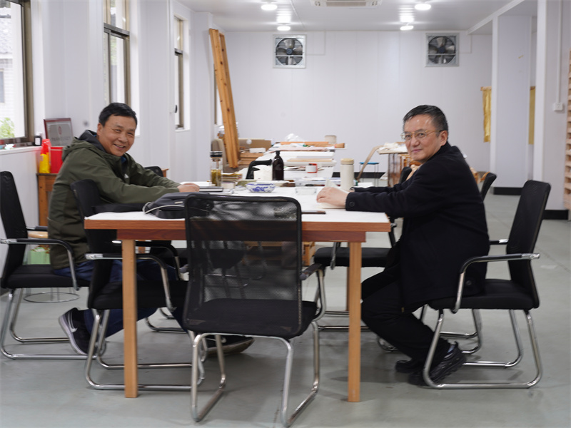 2021.4.14 中國科技大學(xué)人文與社會科學(xué)學(xué)院院長湯書昆來公司指導(dǎo)楮紙古法制作技藝。